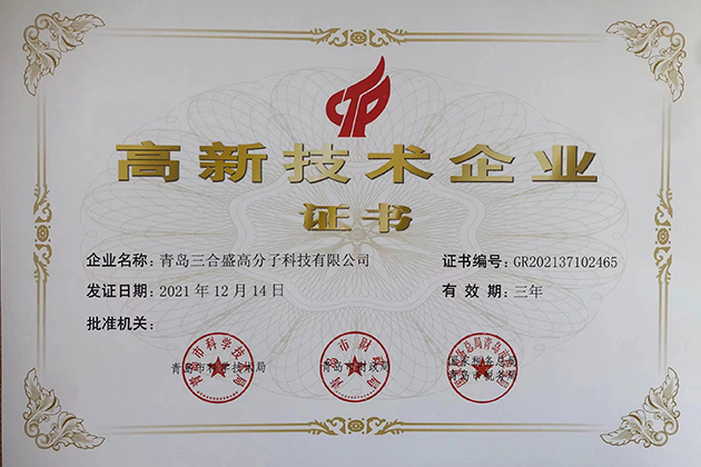 2021年12月14日,由國家稅務總局、青島市稅務局、青島市科技局、青島市財政局聯合頒發的的高新技術企業認證名單正式公布,青島快猫在线观看视频高分子科技有限公司(以下簡稱青島快猫在线观看视频)順利通過高新技術企業認證,這標誌著青島快猫在线观看视频在創新管理、人員梯隊、科技研發以及科技成果轉化、產業化等方麵又邁上了一個新的台階!